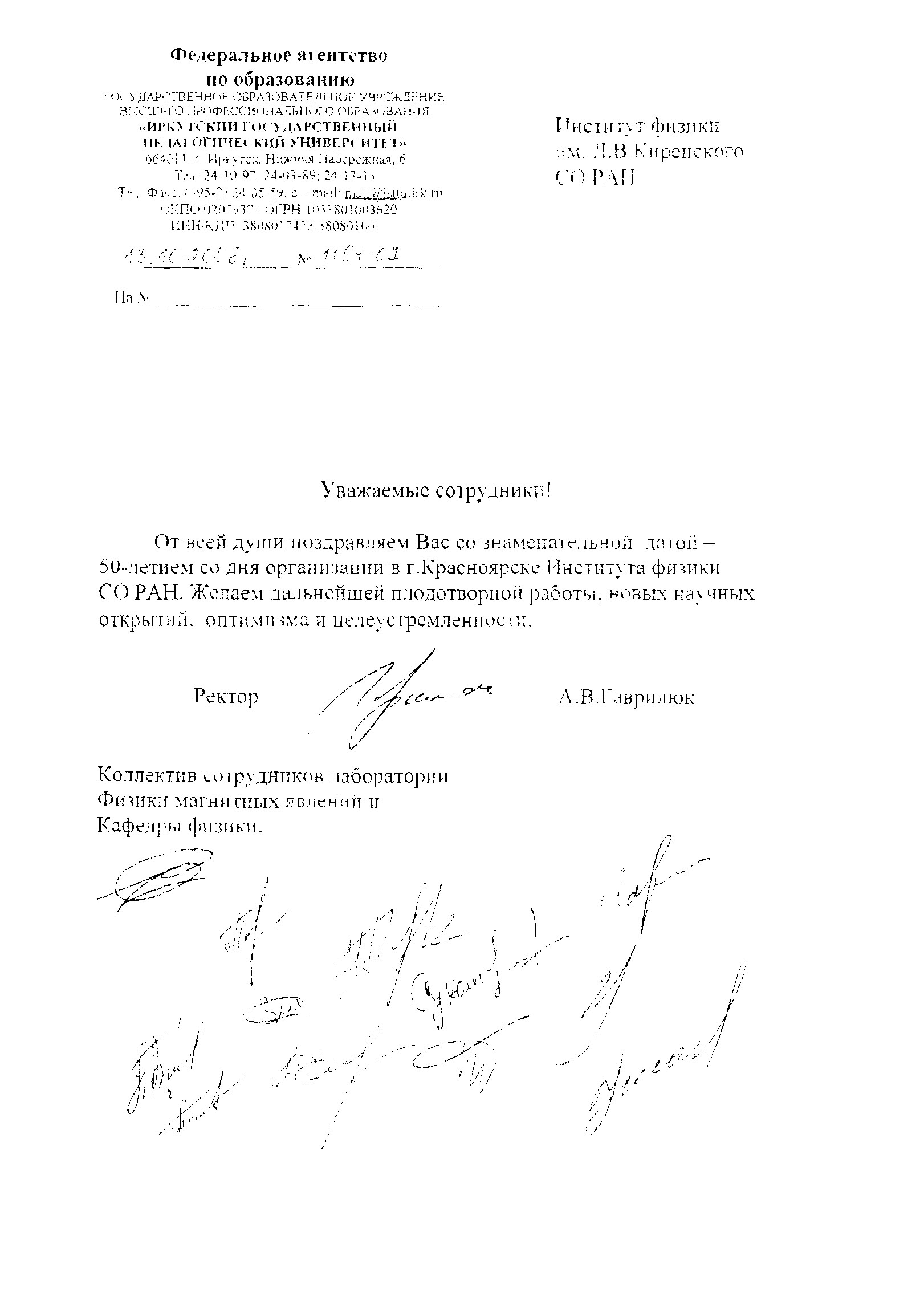Вы здесь: Главная / Документы / Поздравления с 50-летием Института / Иркутский государственный педагогический университет