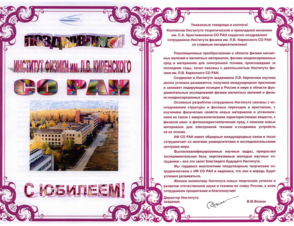 Вы здесь: Главная / Документы / Поздравления с 50-летием Института / Институт теоретической и прикладной механики им. С.А. Христиановича СО РАН