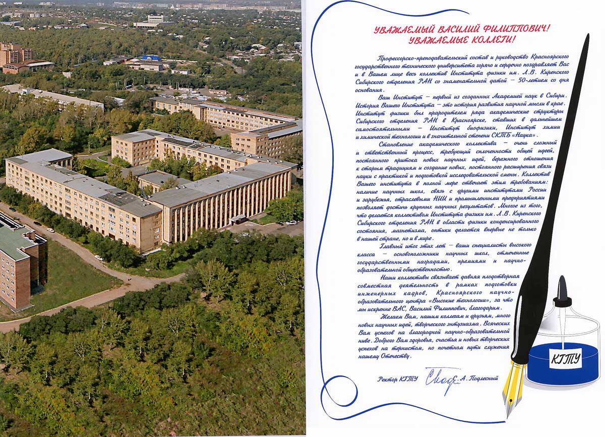 Вы здесь: Главная / Документы / Поздравления с 50-летием Института / Красноряский Государственный технический университет