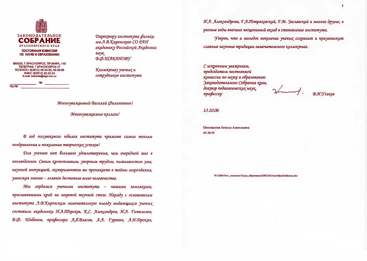 Вы здесь: Главная / Документы / Поздравления с 50-летием Института / Законодательное собрание Красноярского края