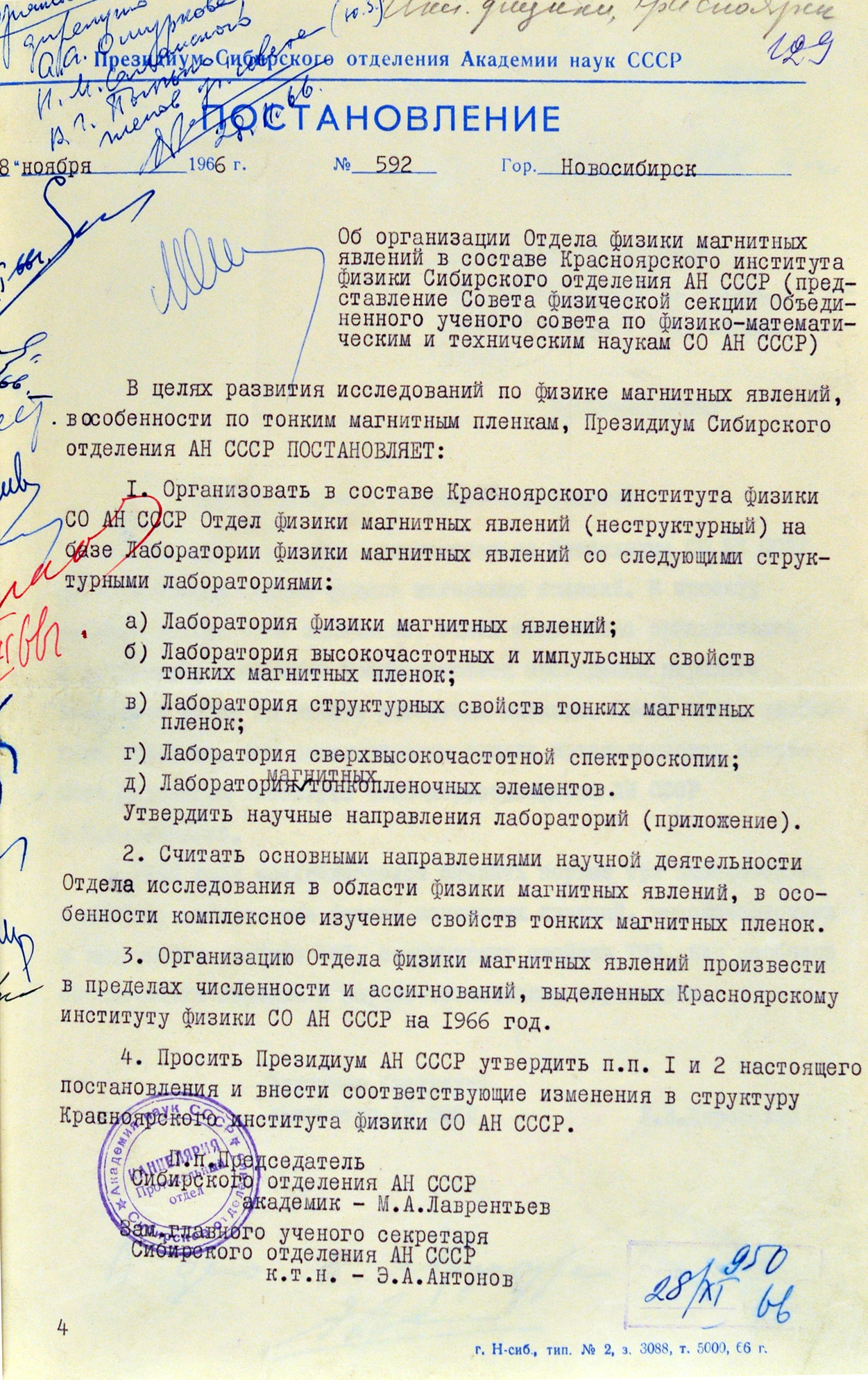 Постановление об организации отдела ФМЯ