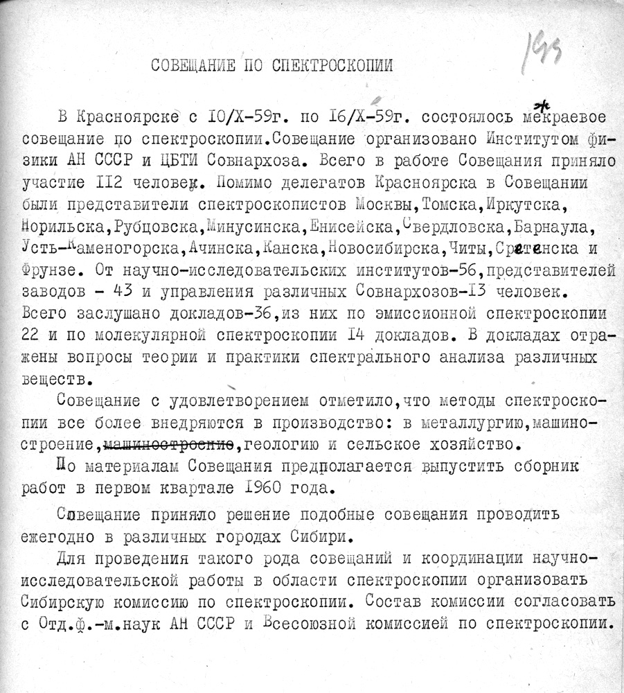 Вы здесь: Главная / Документы / Из архива Института физики / Совещание по спектроскопии