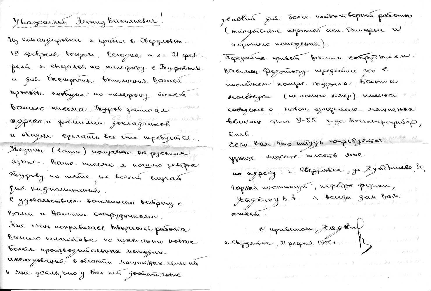 В.А. Кадкин, кафедра физики горного института, г. Свердловск