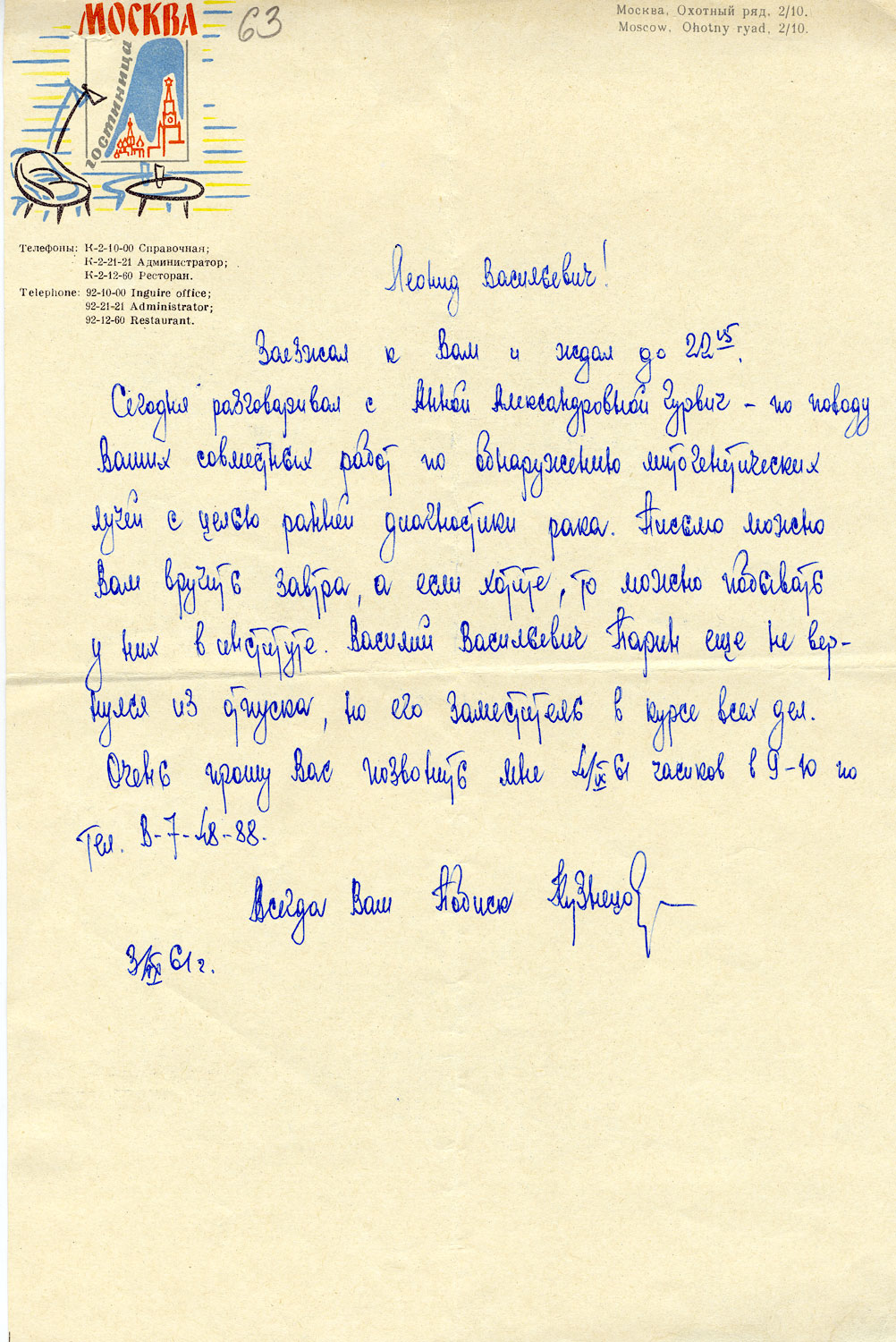 Вы здесь: Главная / Документы / Переписка Л. В. Киренского / Письма к Л. В. Киренскому / Кузнецов В. Е. / Кузнецов В.Е., первый ученый секретарь Института физики.