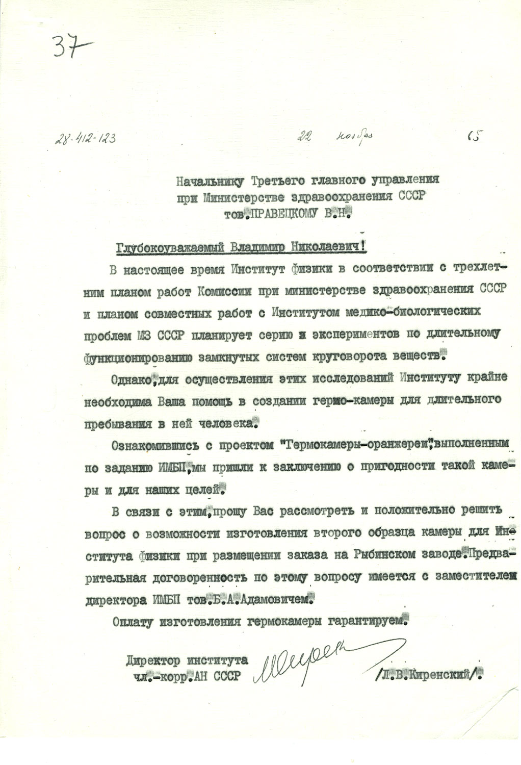 Вы здесь: Главная / Документы / Переписка Л. В. Киренского / Письма Л. В. Киренского / Начальнику 3 главного управления при Минздраве СССР Правецкому В.Н.