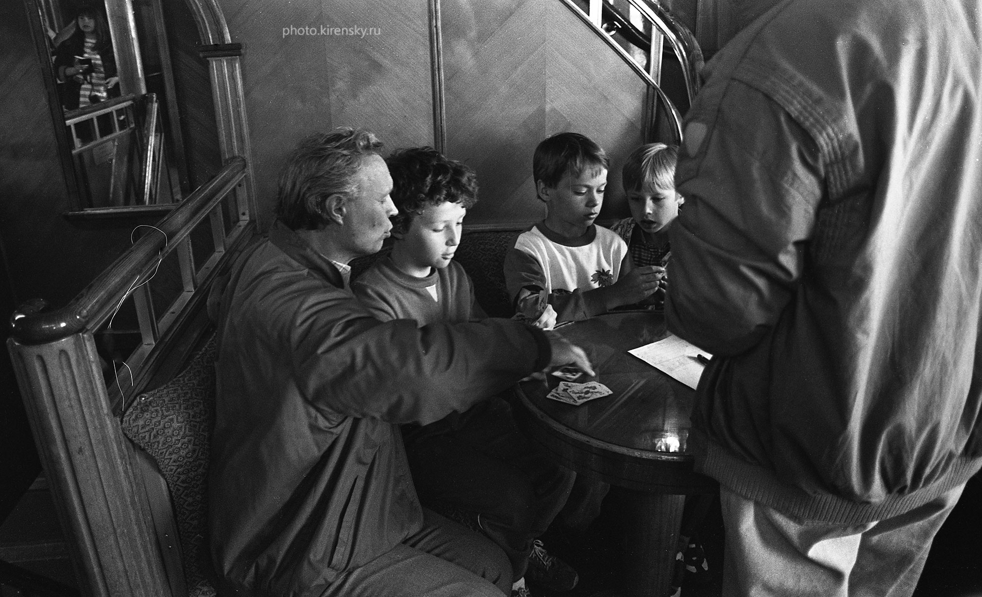 Хрусталев Б.П., заместитель директора по научной работе и заведующий лабораторией сильных магнитных полей Института физики им. Л.В. Киренского Сибирского отделения Российской академии наук (слева рядом с внуком Димой), на Международной конференции по магнитоэлектронике, организованной и поведенной с 1 по 10 июля 1992 года на теплоходе «А. Матросов» (рейс Красноярск – Дудинка - Красноярск) .