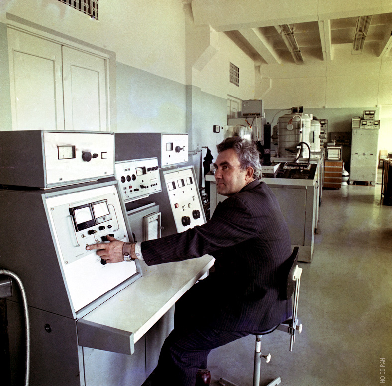 1984 год. Кононов Владимир Павлович, научный сотрудник лаборатории физики магнитных пленок Института физики им. Л.В. Киренского Сибирского отделения Академии наук СССР (ИФ СО АН СССР) (СО АН СССР с 1991 года СО РАН), за вакуумной установкой УНУ-1 для напыления пленок. Красноярск.