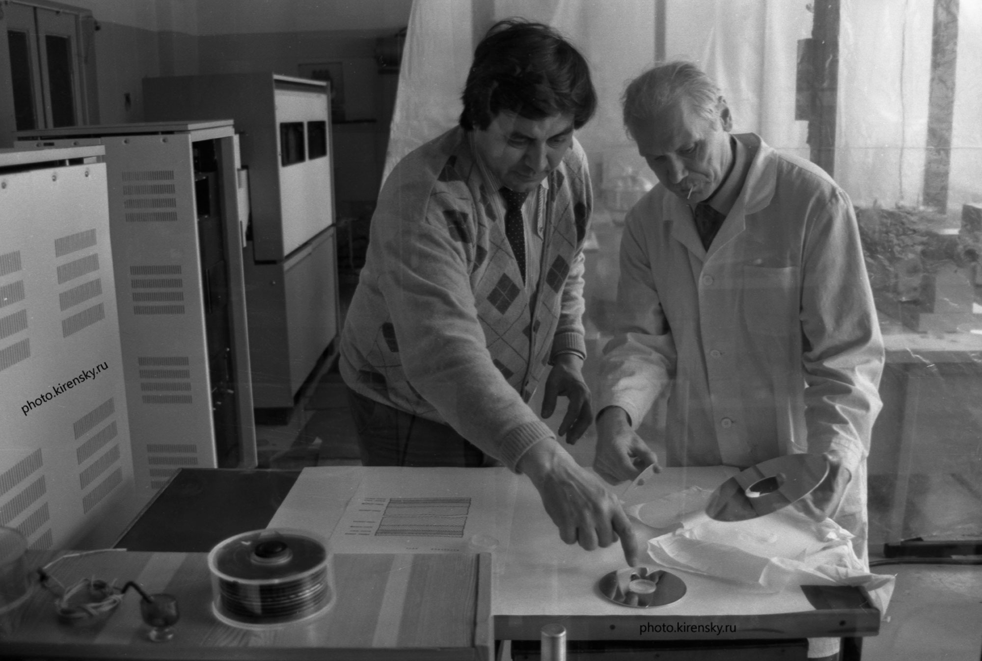 1992 год. На снимке сотрудники лаборатории магнитодинамики Института физики им. Л.В. Киренского Сибирского отделения Российской академии наук (ИФ СО РАН) Бакшеев Н.В. (слева) и Турпанов И.А. Красноярск.