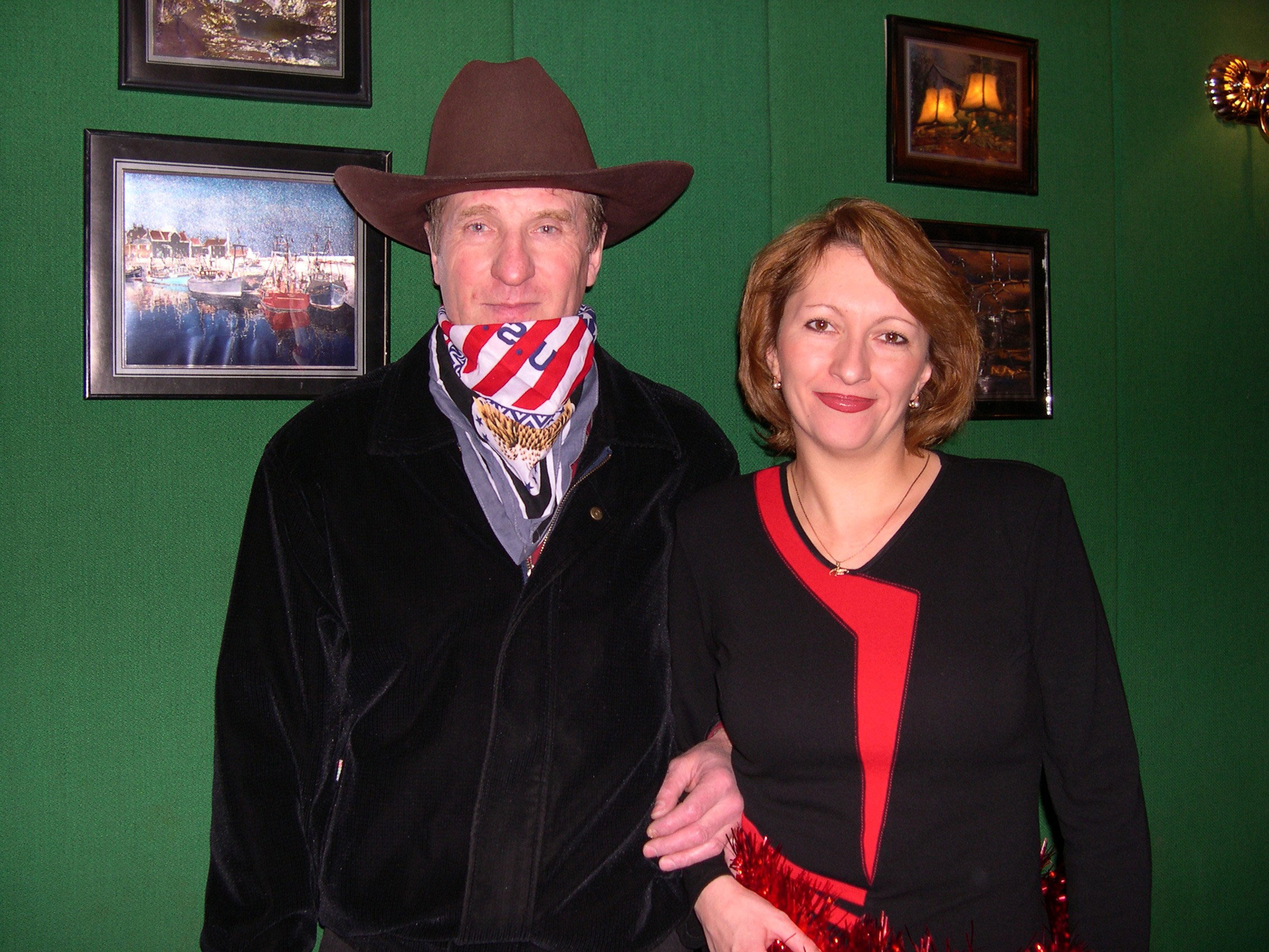 Декабрь 2005 года. Дом учёных в Академгородке, Christmas Party. Елена Бондарева, помощник директора Института физики им. Л.В. Киренского Сибирского отделения РАН, с Виктором Григорьевичем Мягковым, старшим научным сотрудником лаборатории физики магнитных плёнок. Красноярск.
