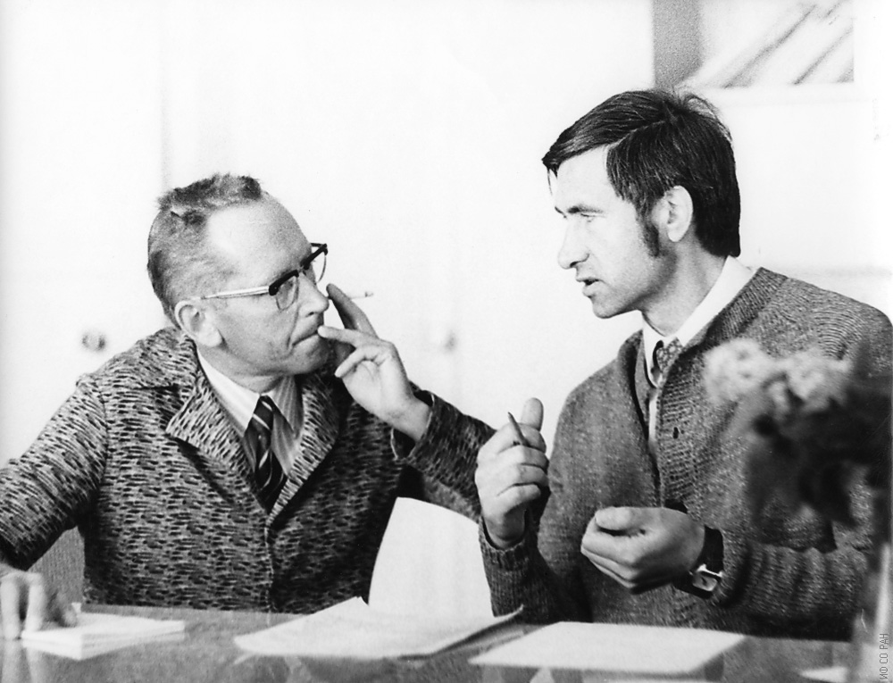 Александров К. С. (слева), заместитель директора по научной работе Института физики им. Л.В. Киренского Сибирского отделения Академии наук СССР (ИФ СО АН СССР) и Смокотин Э. М., ученый секретарь института. Фото 1978 года. Красноярск.