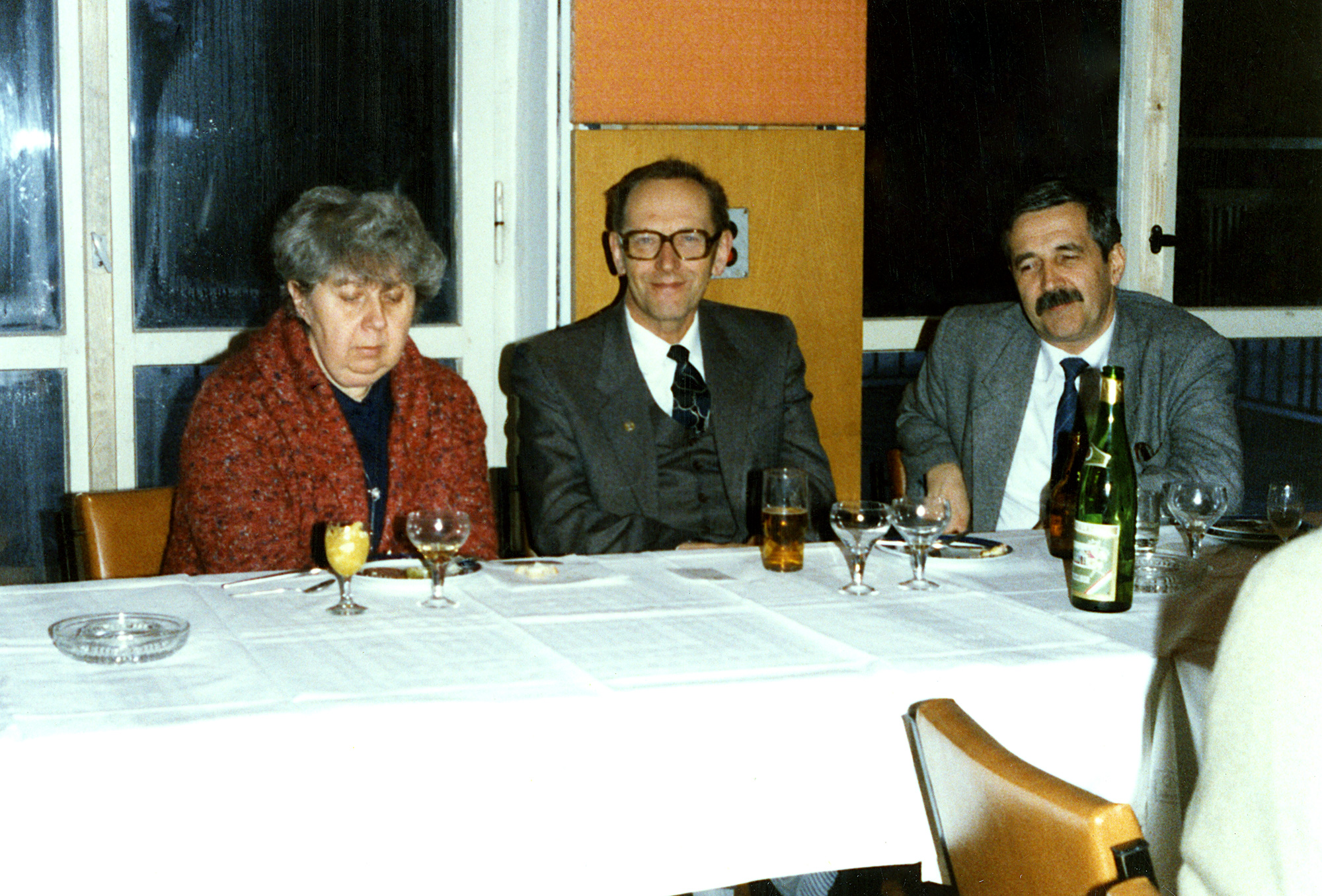 Александров К.С. (в центре), директор Института физики им. Л.В. Киренского Сибирского отделения Академии наук СССР (ИФ СО АН СССР), в Германской Демократической Республике, где проходила школа по сегнетоэлектричеству, рядом с профессором Хегенбартом, апрель 1986 год.