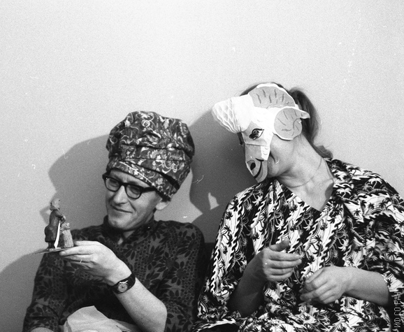 Театрализованное представление на занятиях английского языка на кафедре иностранных языков Института физики им. Л.В. Киренскоо Сибирского отделения Академии наук СССР (ИФ СО АН СССР). Слева Александров К.С., заведующий лабораторией кристаллофизики института. Фото 1974 года. Красноярск.