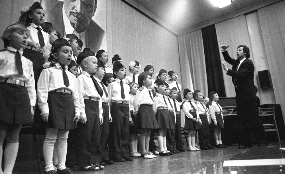 Детская хоровая капелла. Участие детской хоровой капеллы школы № 41 Академгородка, в которой пели и дети сотрудников института, в праздничном концерте, посвященном 25-летию Института физики, 1981 г.