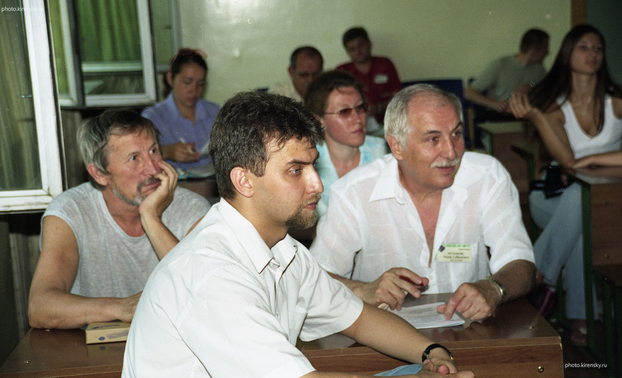 Комогорцев Сергей Викторович (слева), Исхаков Рауф Садыкович, во втором ряду слева Жигалов В.С., сотрудники Института физики им. Л.В. Киренского Сибирского отделения Российской академии наук на заседание секции Евро-Азиатского симпозиума «Прогресс в магнетизме» (ЕASTMAG-2004). Красноярск, август 2004 года.