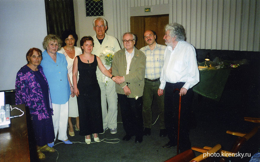 После выступления В.В. Спирова (третий справа) перед группой норвежских туристов с композицией по книге Ф. Нансена « В страну будущего». На снимке: внук Ф. Нансена (самый высокий) Эйгель Нансен и представители красноярской интеллигенции. Среди них: В.В. Фефелова (третья слева) и Р.Г. Хлебопрос (крайний справа).