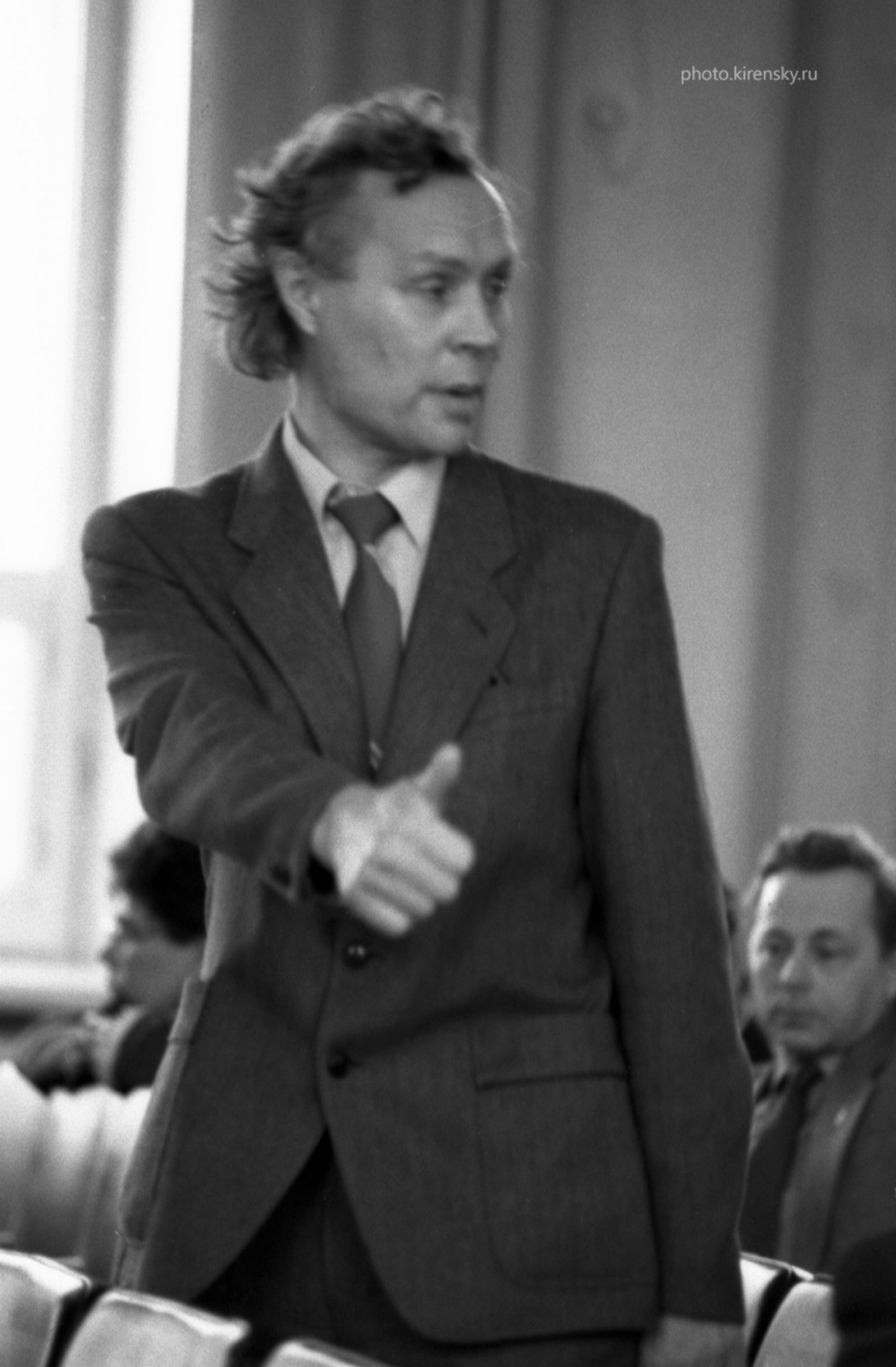 Хрусталев Борис Петрович (одна из последних фотографий), заместитель директора по научной работе, заведующий лабораторией сильных магнитных полей Института физики им. Л.В. Киренского Сибирского отделения Российской академии наук (ИФ СО РАН), справа: Петраковский Герман Антонович, доктор физико-математических наук, профессор, заведующий лабораторией резонансных свойств магнитоупорядоченных веществ ИФ СО РАН, на ученом Совете института. Снимок 1995 года. Красноярск.