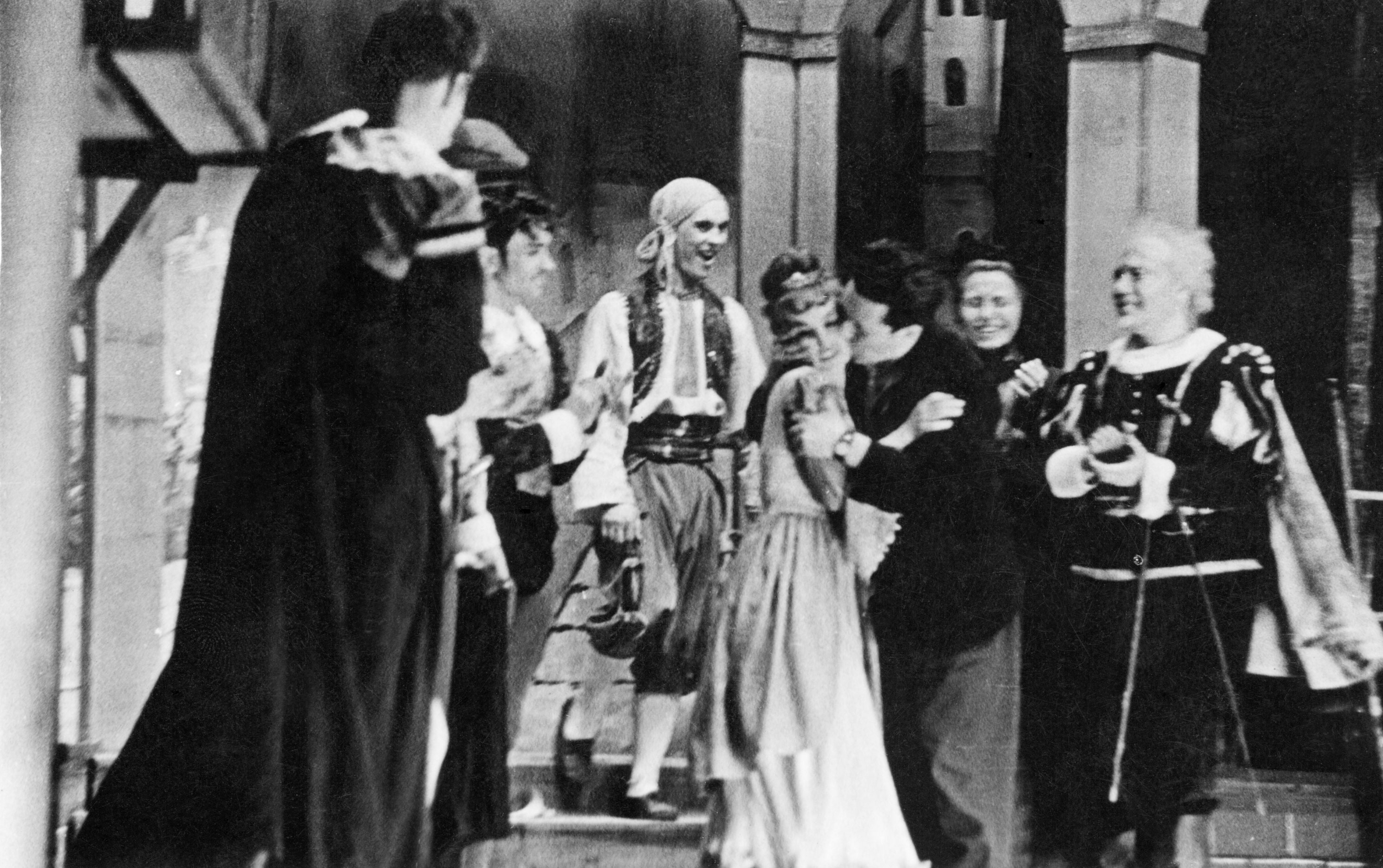 Борис Хрусталев, студент 4-го курса физико-математического факультета Красноярского государственного педагогического института (третий слева), в студенческом спектакле «Слуга двух господ», 1961 год. Красноярск.