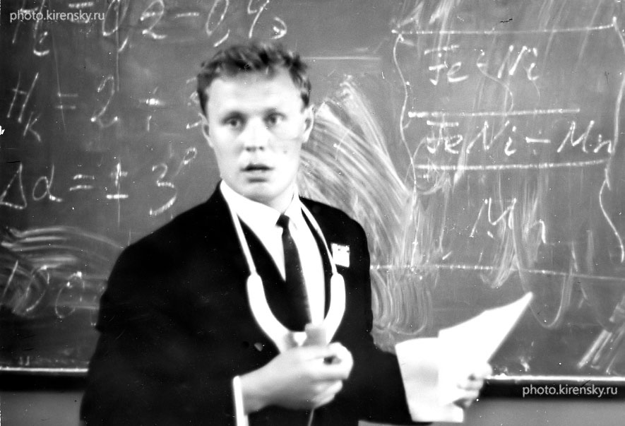 Хрусталёв Борис Петрович с докладом в Иркутске на Международном симпозиуме по физике магнитных пленок в 1968 году. Такой симпозиум был организован и проведен Институтом физики Сибирского отделения Академии наук СССР совместно с Иркутским государственным педагогическим институтом по поручению Совета Министров СССР по науке и технике. Он был первым в СССР и третьим в мире.