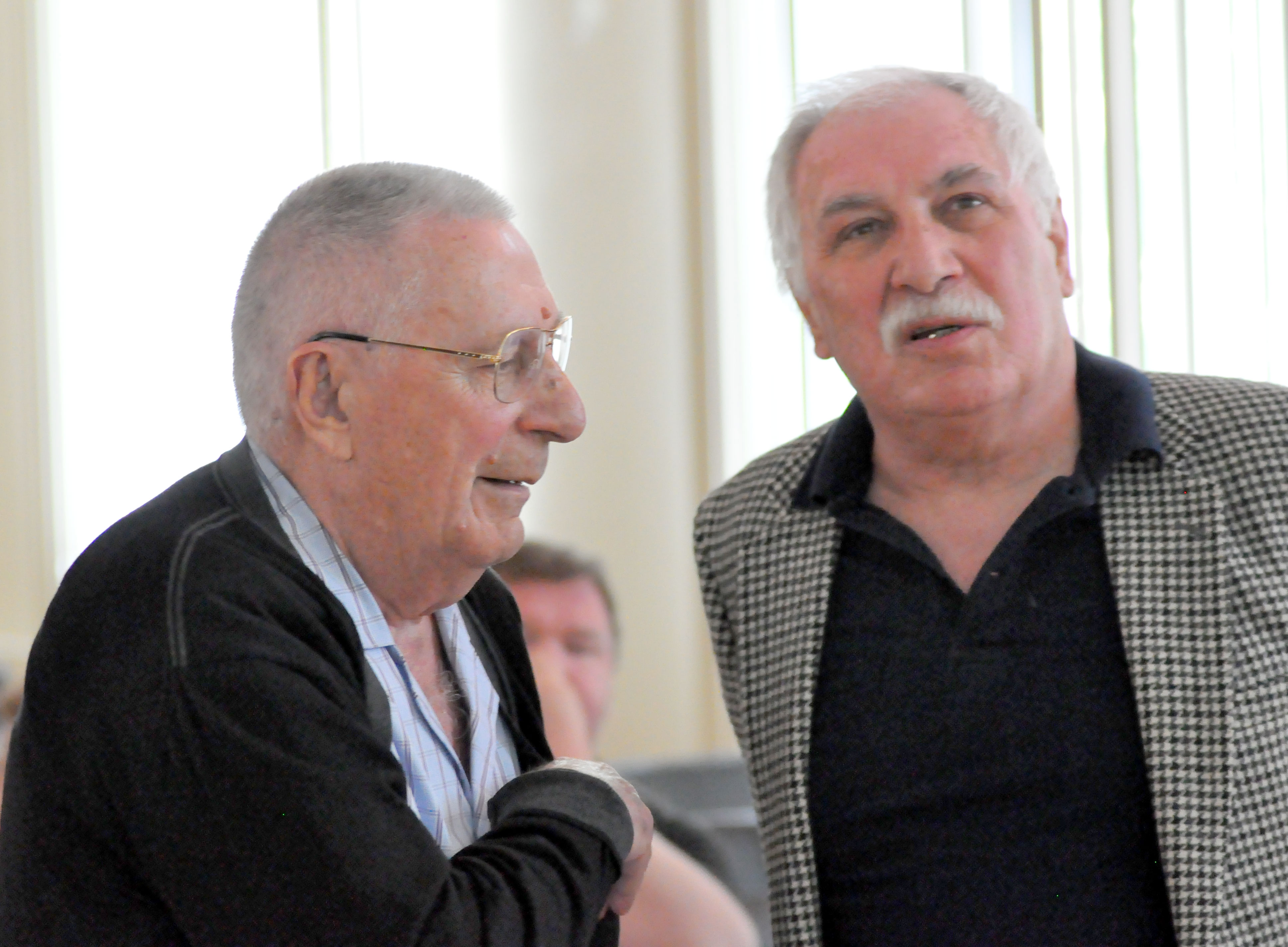 29 мая 2015 года. Игнатченко В.А. (слева), главный научный сотрудник лаборатории теоретической физики и Исхаков Р.С., заведующий лабораторией физики магнитных пленок Института физики им. Л.В. Киренского Сибирского отделения Российской академии наук (ИФ СО РАН), на заседании ученого Совета института. Красноярск.