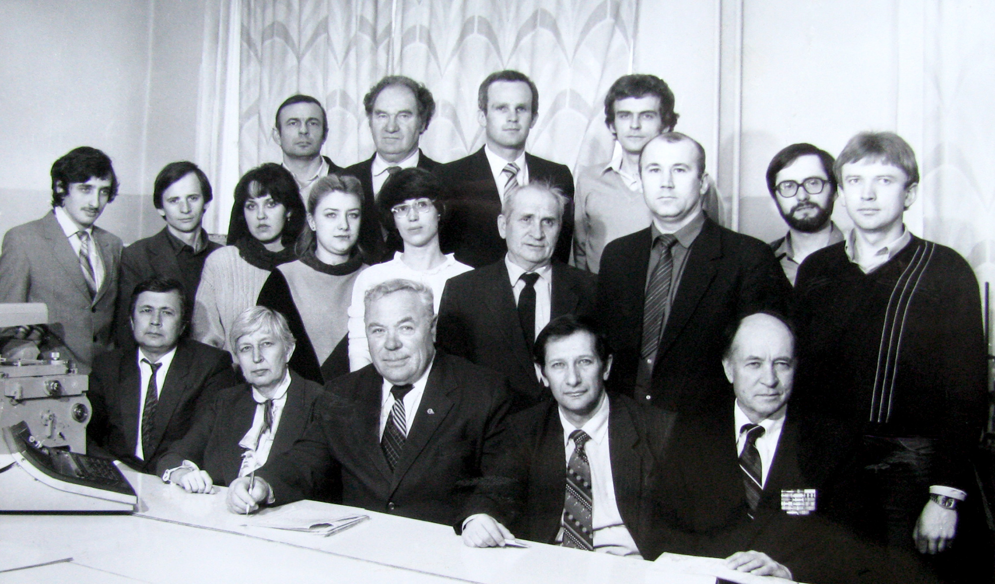 Дрокин А.И. (сидит в центре), заведующий кафедрой экспериментальной физики Симферополького государственного университета. Справа от Дрокина Бержанский В. Н. 1987 год. Симферополь.