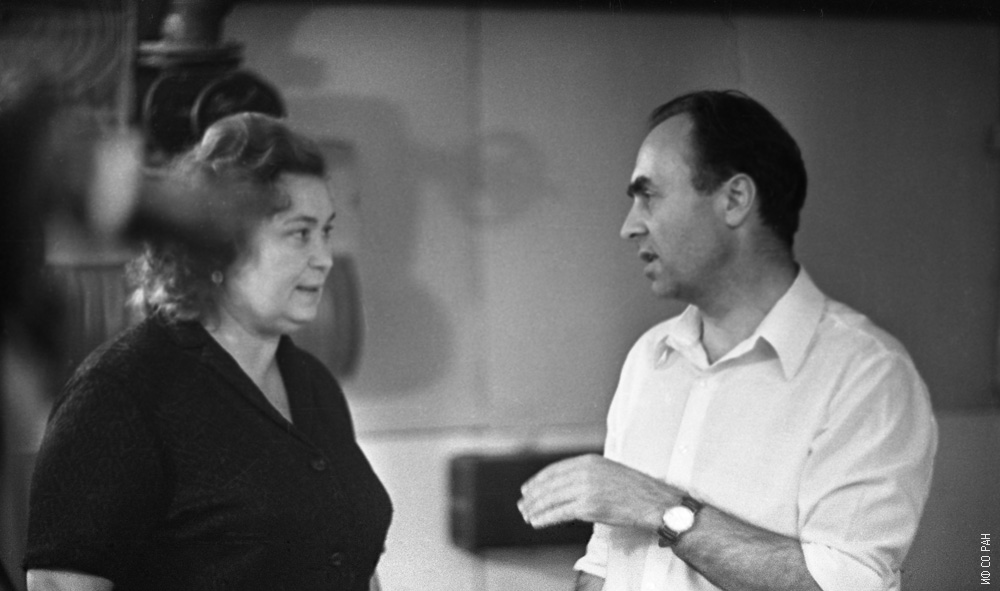Климик Е.Д., начальник первого отдела и Лисовский Г.М., заведующий лабораторией управляемого биосинтеза Института физики им. Л.В. Киренского Сибирского отделения Академии наук СССР (ИФ СО АН СССР). Снимк 1973 года.