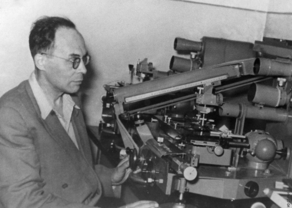 Коршунов Анатолий Васильевич за одним из спектрографов на кафедре физики Сибирского государственного лесотехнического института, Красноярск, 1956 год.