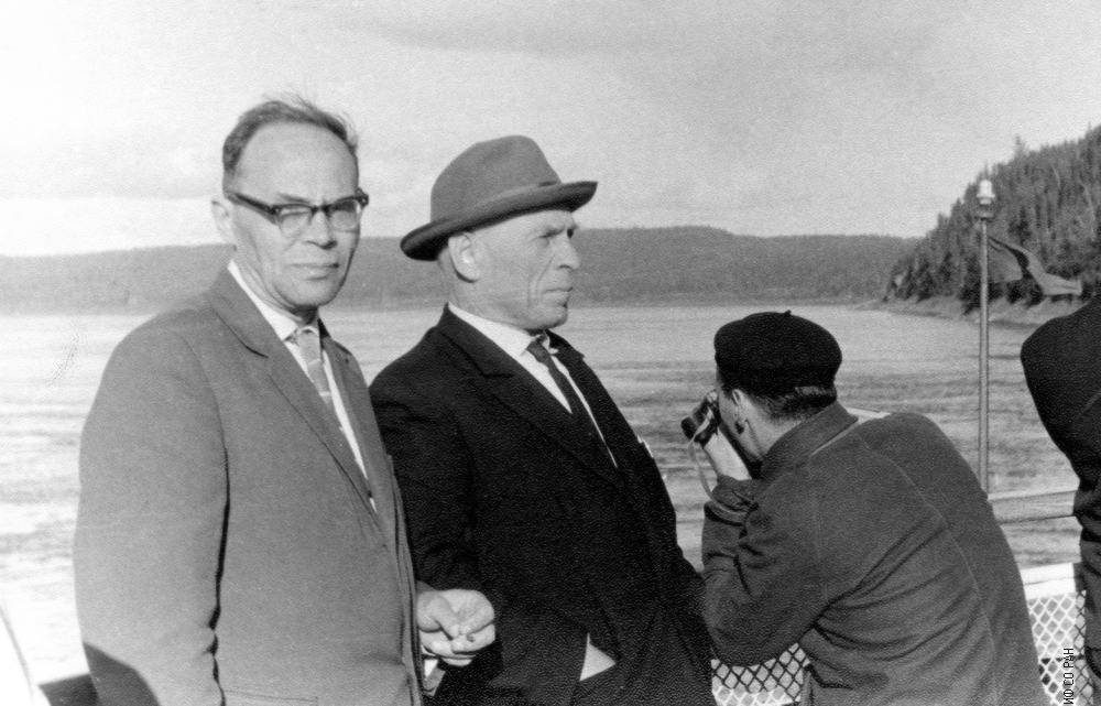 В 1964 году на теплоходе «В. Чкалов» (рейс Красноярск-Дудинка-Красноярск по Енисею) была проведена Всесоюзная конференция « Интенсивность и контуры спектральных линий атомных и молекулярных систем». Конференция была организована и проведена Институтом физики Сибирского отделения Академии наук СССР (ИФ СО АН СССР). Слева – Коршунов Анатолий Васильевич, заведующий лабораторией молекулярной спектроскопии института.