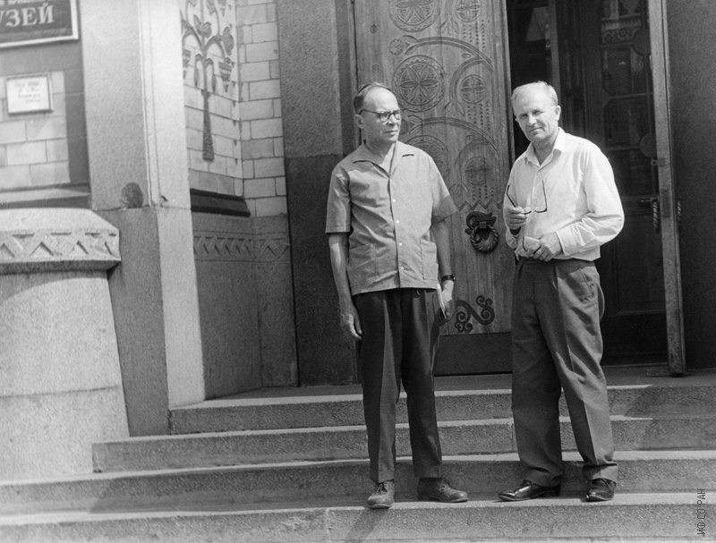 1966 год. Профессор А.В. Коршунов (слева), заведующий лабораторией молекулярной спектроскопии Института физики Сибирского отделения Академии наук СССР (ИФ СО АН СССР), на третьем Всесоюзном совещании по физики жидкости в Самарканде.