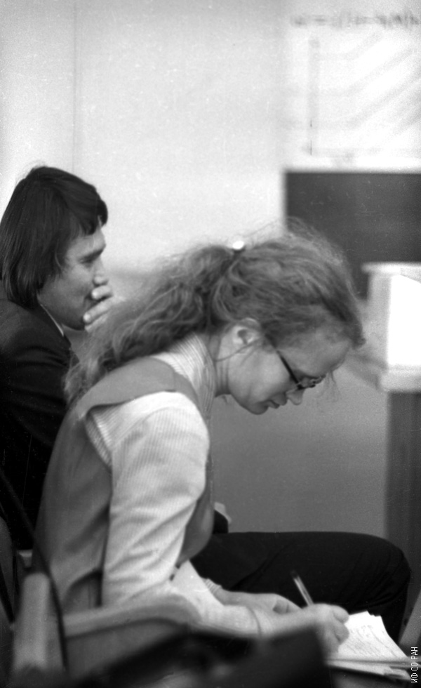 Супруги Михайловский С.С. и Михайловская Л.В., сотрудники Института физики им. Л.В. Киренского Сибирского отделения Академии наук СССР (ИФ СО АН СССР), на специализированном Совете по защитам, фото 1973 года. Красноярск