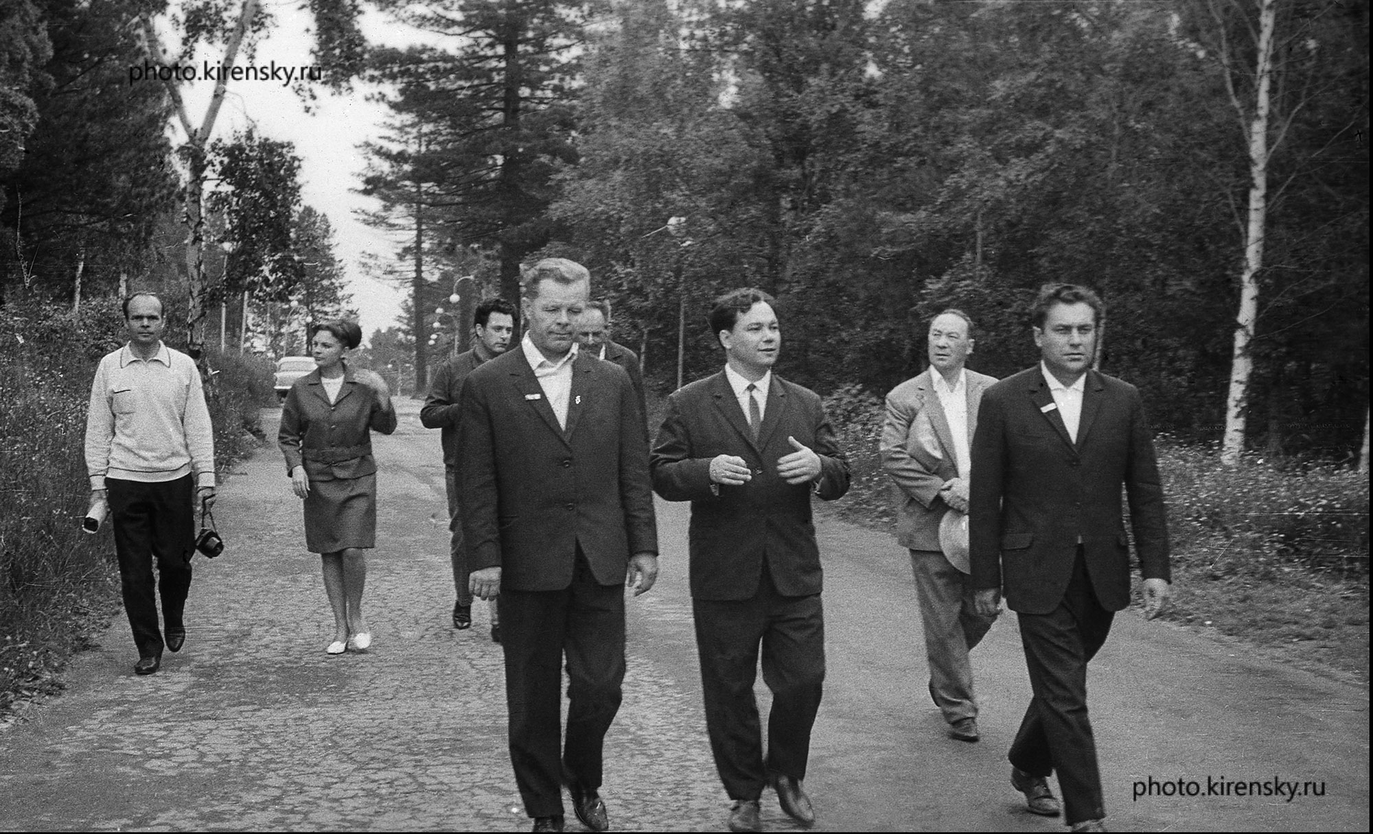 Снимок 1968 года. Иркутск. Во время работы Международного симпозиума по физике магнитных пленок (первый симпозиум в СССР и третий в мире). Симпозиум подготовлен Институтом физики СО АН СССР (Красноярск) совместно с проблемной лабораторией по магнетизму Иркутского пединститута, и проведен был в Иркутске, поскольку Красноярск в то время был закрытым городом. Во втором ряду справа академик Киренский Л.В., директор Института физики, в первом ряду в центре Буравихин В.А., заведующий проблемной лабораторией по магнетизму.