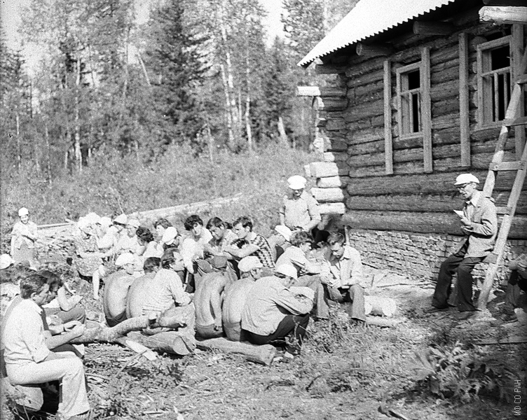 На фото запечатлено одно из общих собраний членов садоводческого общества «Физик», организованного в 1974 году, фото 1980 г.