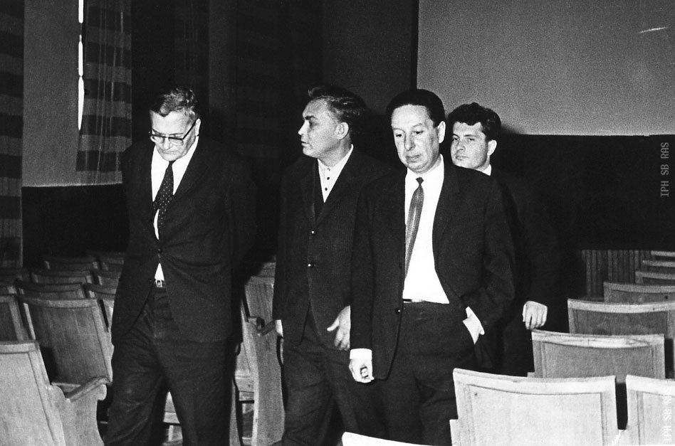 В 1969 году Институт физики Сибирского отделения Академии наук СССР посетил председатель государственного комитета СССР по науке и технике В.А. Кириллин. На фото, слева направо: В.А. Кириллин, И.А. Терсков, А.Г. Лундин, заместители директора института по научной работе, Ю.В. Захаров, ученый секретарь института. Красноярск.