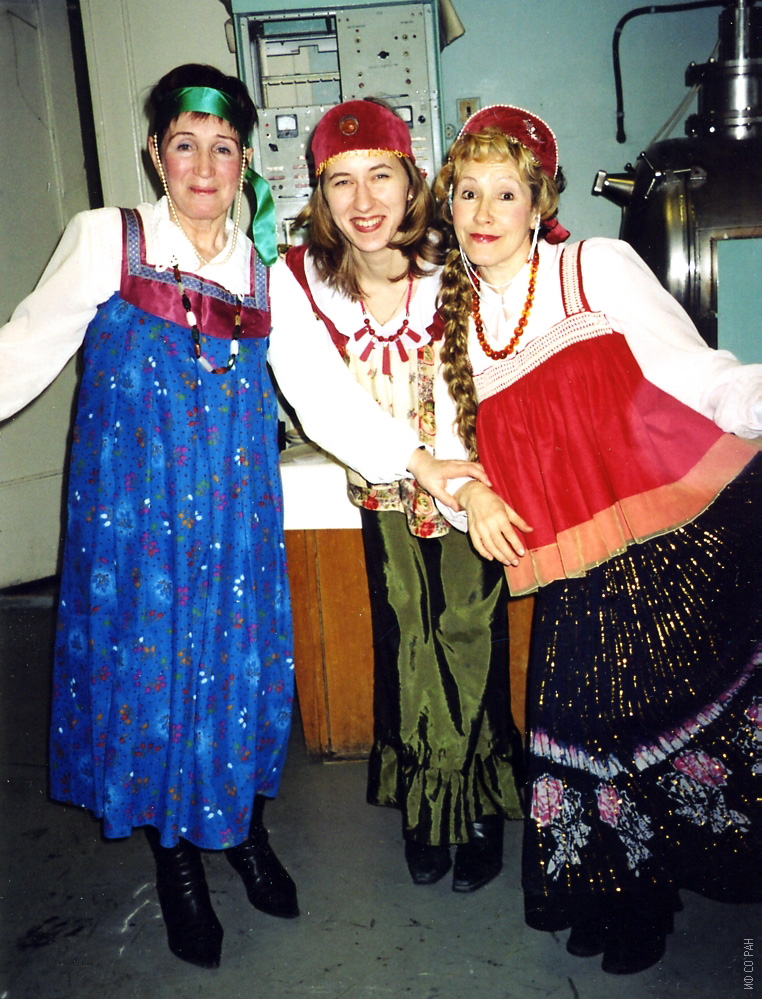 Сотрудники лаборатории кристаллофизики Института физики им. Л.В. Киренского Сибирского отделения Российской академии наук (ИФ СО РАН) провожают масленицу (последний день зимы). Слева направо: Бовина А.Ф., Фокина В.Д., Давыдова Т.Н., март 2009 года. Красноярск.