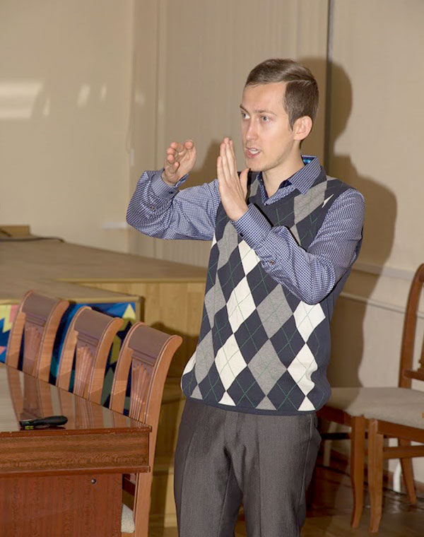 Пятнов Максим Владимирович, кандидат физико-математических наук, научный сотрудник лаборатории фотоники молекулярных систем Института физики им. Л.В. Киренского Сибирского отделения Российской академии наук, на ежегодной конференции молодых учёных, аспирантов и студентов, организованной Федеральным исследовательским центром Красноярского научного центра Сибирского отделения Российской академии наук 23 марта 2017 года.