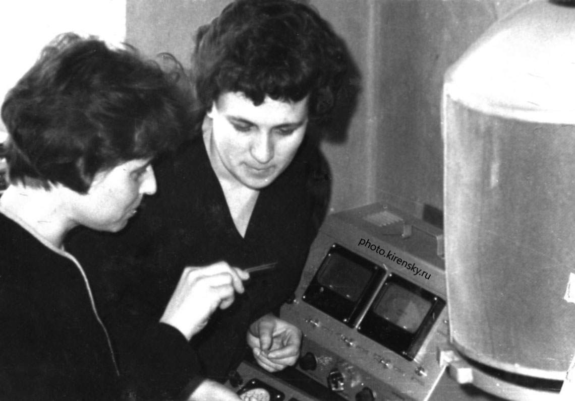 1967 год. Н.К. Селезнева (слева) и Г.Г. Харченко, сотрудники лаборатории высокочастотных и импульсных свойств тонких магнитных пленок Института физики Сибирского отделения Академии наук СССР (ИФ СО АН СССР),