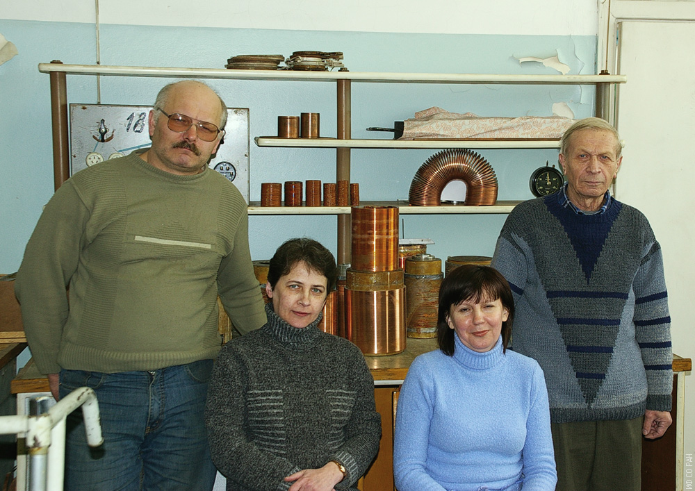 Группа конструирования, изготовления и эксплуатации соленоидов лаборатории сильных магнитных полей Институт физики им. Л.В. Киренского Сибирского отделения Российской академии наук (ИФ СО РАН). Слева направо: М.И. Сатановский, Ж.Д. Рубаева, И.П. Лукина, А.И. Садовский. Снимок 2006 года.