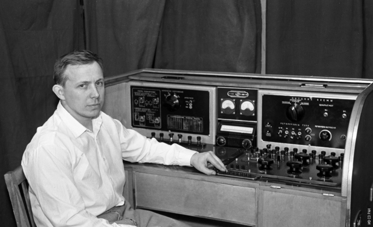 Ермилов В. П., начальник бюро контрольно-измерительных приборов (бюро КИП) Института физики им. Л.В. Киренского Сибирского отделения Академии наук СССР (ИФ СО АН СССР), фото 1972 года. Красноярск