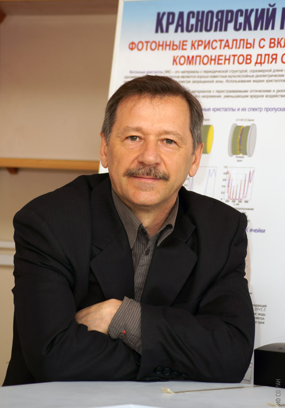 Гуняков Владимир Алексеевич, к.ф.-м.н., старший научный сотрудник лаборатории молекулярной спектроскопии Института физики им. Л.В. Киренского Российской академии наук (ИФ СО РАН), специалист в области жидких и фотонных кристаллов, фото 2011 года. Красноярск. Академгородок.