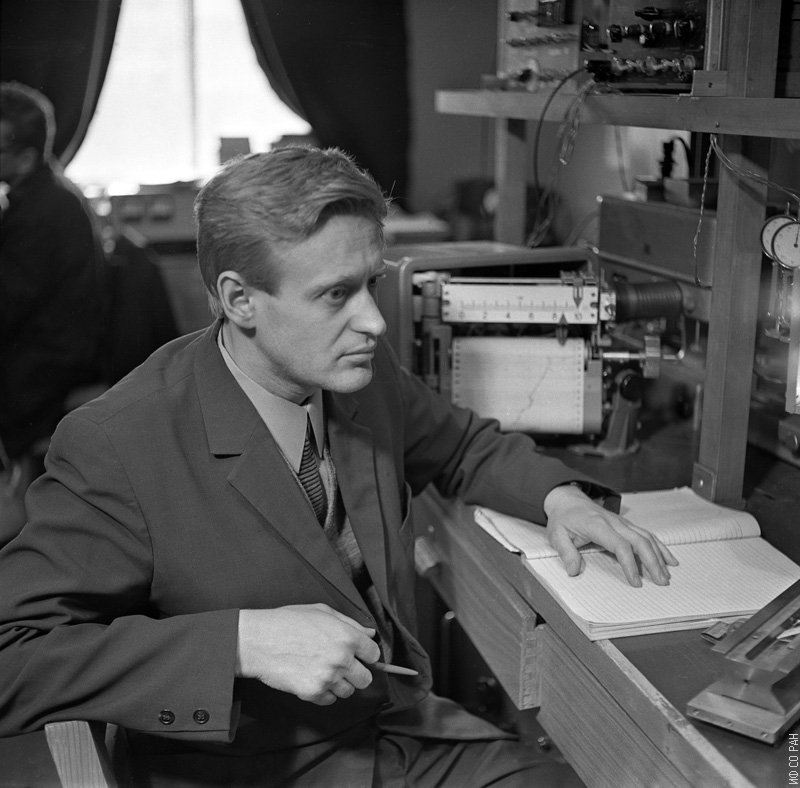 Малаховский А. В., младший научный сотрудник лаборатории физики магнитных явлений Института физики им. Л.В. Киренского Сибирского отделения Академии наук СССР, фото 1971 года. Красноярск.