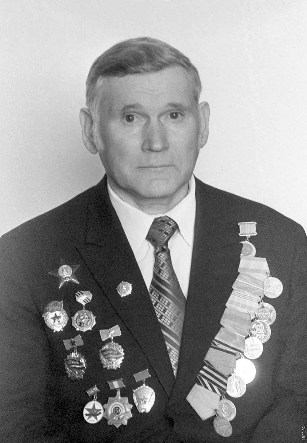 1985 год. Смолянинов Семен Иванович, ветеран Великой Отечественной войны 1941-1945 гг., участник торжественного заседания в честь Дня Победы в конференц- зале Института физики им. Л.В. Киренского Сибирского отделения Академии наук СССР (ИФ СО АН СССР).