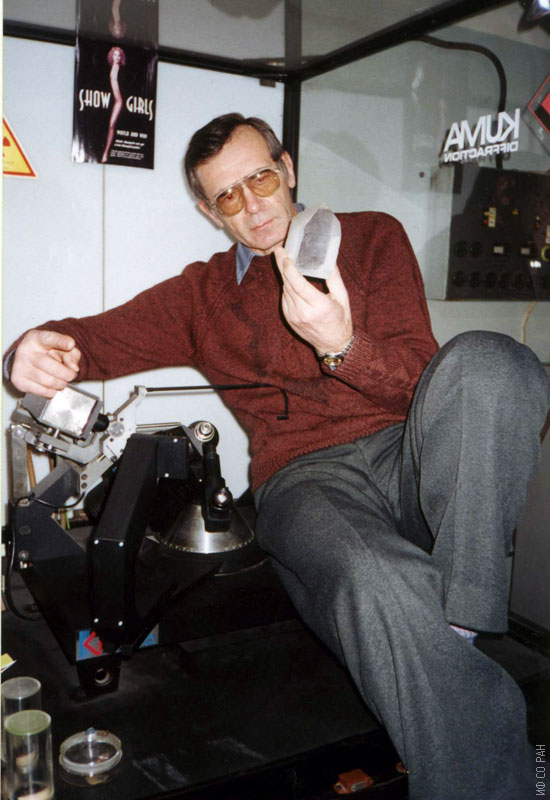 Васильев А.Д. Научный сотрудник лаборатории кристаллофизики Института физики им. Л.В. Киренского Сибирского отделения Российской академии наук и его дифрактометр KUMA-RM 4, фото 2001 года. Красноярск.