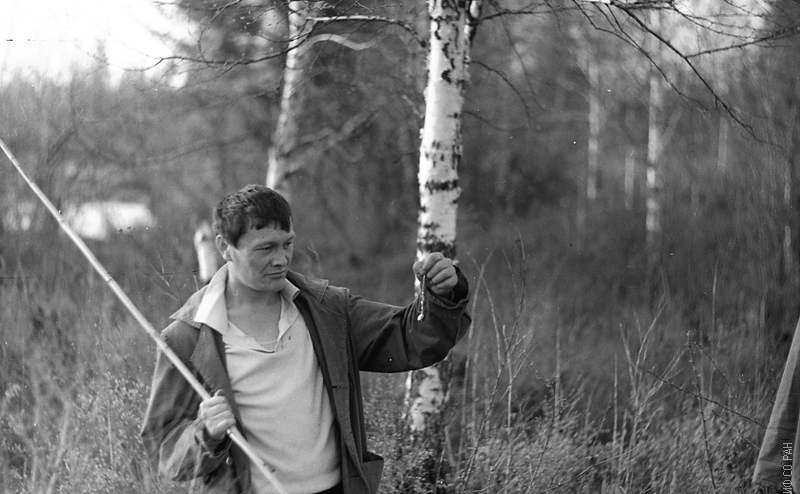 Зиненко В.И., младший научный сотрудник лаборатории кристаллофизики Института физики им. Л.В. Киренского Сибирского отделения Академии наук СССР (ИФ СО АН СССР), на рыбалке в охотничьих угодьях института, фото 1972 года.