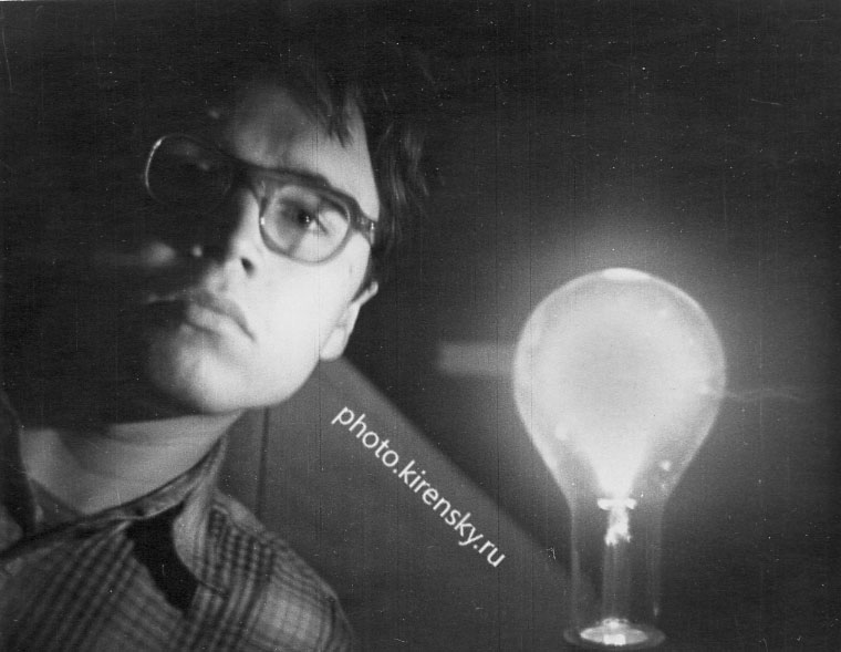 1961 год. Красноярск. В. В. Спировым, сотрудником лаборатории биофизики Института физики Сибирского отделения Академии наук СССР (ИФ СО АН СССР), была создана установка для съемки воздушных фильтров на железной дороге, что позволило определить преимущество воздушных фильтров перед масляными. Пытается испытать установку, сделав снимки собственной персоны…