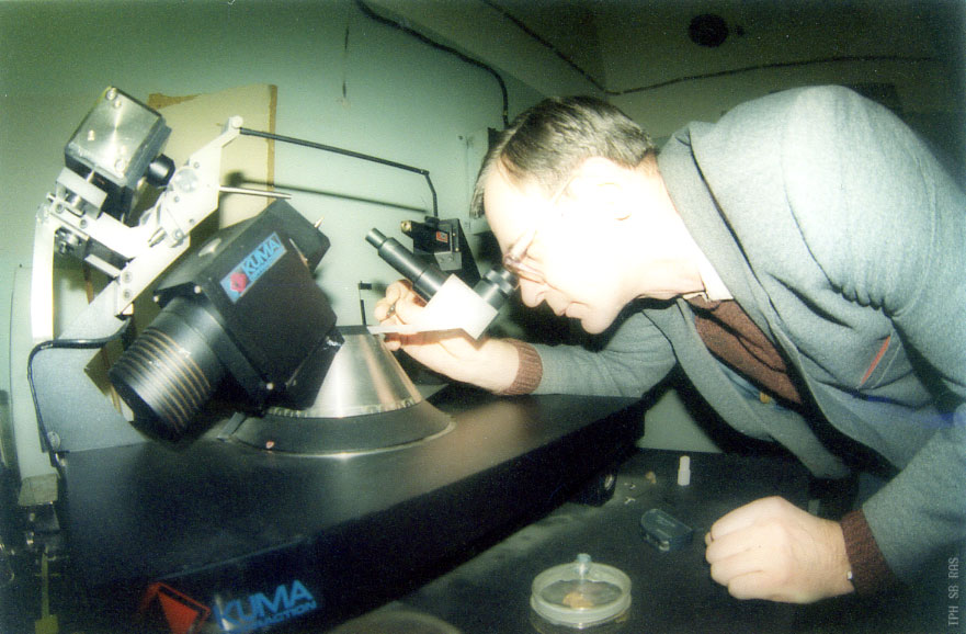 А.Д. Васильев, старший научный сотрудник лаборатории кристаллофизика Института физики им. Л.В. Киренского Сибирского отделения Российской академии наук (ИФ СО РАН), за работой на автоматическом монокристалльном четырехкружном дифрактометре KUMA RM-4. Фото 2006 года. Красноярск.