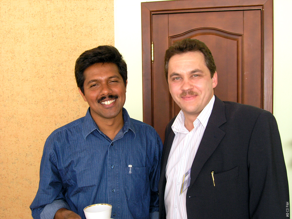 Профессор Ша Воллоппилли (Технический университета Мюнхена) (слева) и Н. В. Волков (Институт физики им. Л.В. Киренского Сибирского отделения Российской академии наук (ИФ СО РАН), на Международной конференции NATO Workshop "Smart Materials for Ranging Systems", Красноярск, август 2004 года.