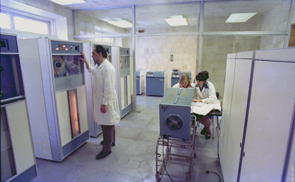 1974 год. В зале вычислительного центра Института физики им. Л.В. Киренского Сибирского отделения Академии наук СССР (ИФ СО АН СССР).