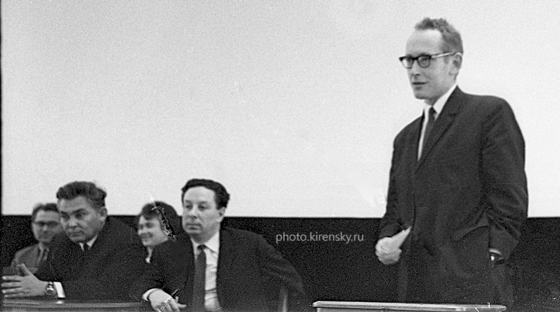 1968 год. Заседание ученого Совета по космическим проблемам в Институте физики Сибирского отделения АН СССР. На снимке К.С. Александров (стоит), И.А. Терсков, А.Г. Лундин (сидят) Красноярск.