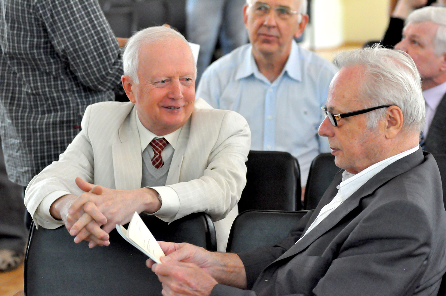 Конференц-зал Института физики им. Л.В. Киренского Сибирского отделения Российской академии наук. Слева направо: Вальков В.В., заведующий лабораторией теоретической физики, Овчинников С.Г., заведующий лабораторией физики магнитных явлений, Беляев Б.А., заведующий лабораторией электродинамики и СВЧ электроники и Петраковский Г.А. главный научный сотрудник лаборатории резонансных свойств магнитоупорядоченных веществ (долгие годы возглавлявший эту лабораторию). Фото 2015 года. Красноярск.