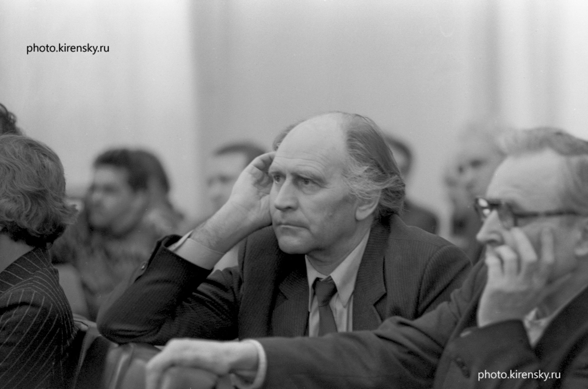 1998 год. Конференц-зал Института физики им. Л.В. Киренского Сибирского отделения Российской академии наук. На снимке: ведущий научный сотрудник лаборатории радио-спектроскопического структурного анализа института Зеер Э.П. (слева) и старший научный сотрудник этой лаборатории Фалалеев О.В. Красноярск.