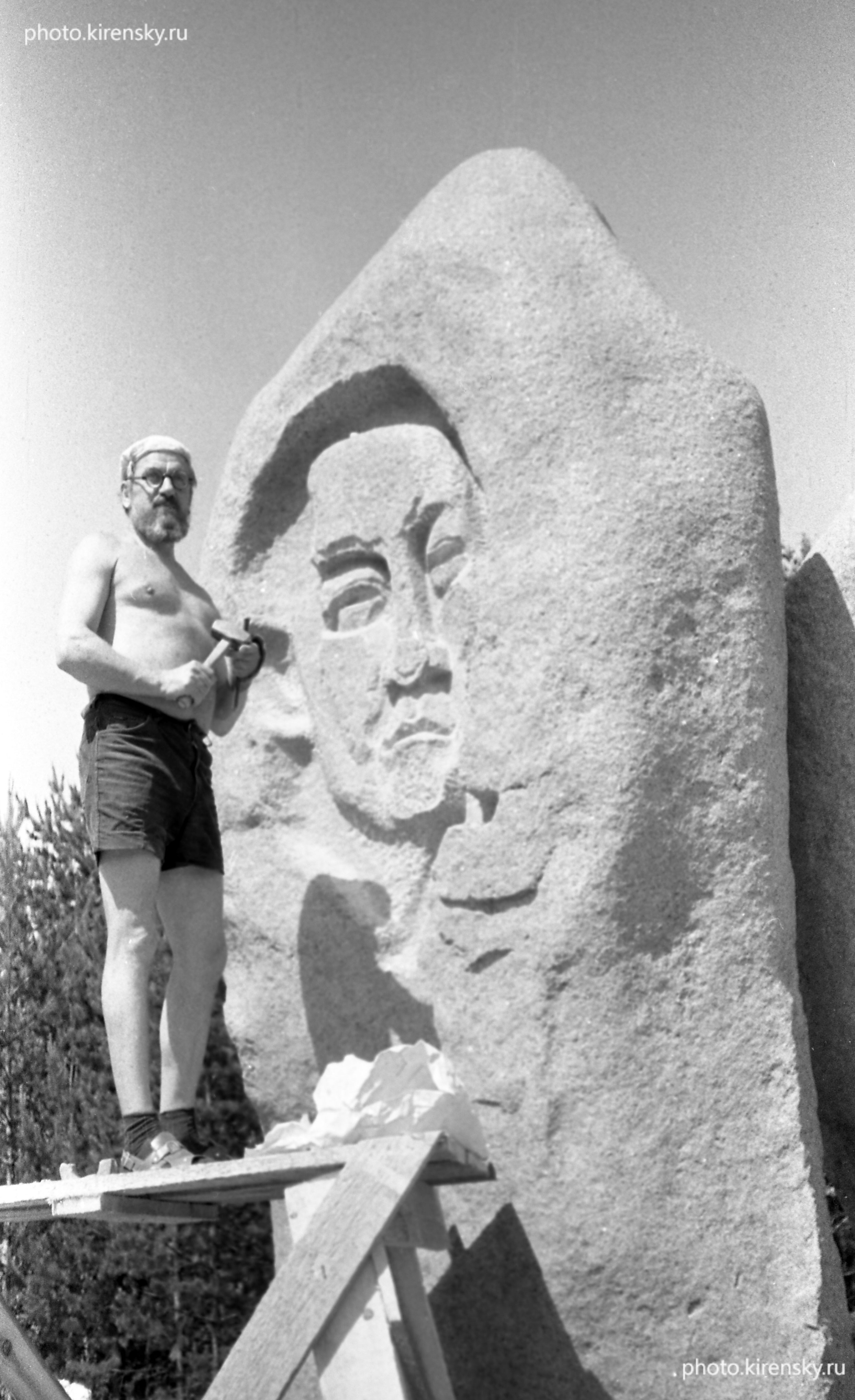 Скульптор В.С. Лемпорт в процессе работы над памятником академику Л.В. Киренскому. Начало 1970-х годов.